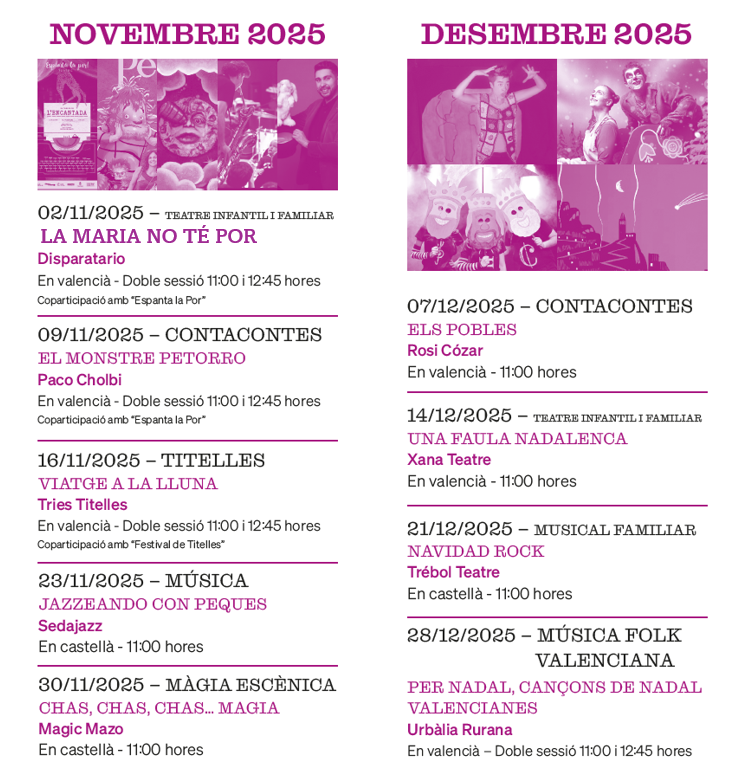 Les activitats programades poden veure’s alterades en el seu horari i contingut, o ser suspeses per circumstàncies imprevistes.