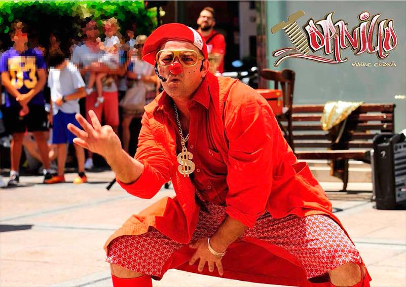 És un pallasso senzill, divertit i juganer, encara que és una poc codony i una mica vaciló. I què té d'especial? Doncs que sap fer riure a petits i grans, és graciós i grassonet, és un dels millors. El mateix et fa màgia, que et balla, que t'explica un acudit, o puja a la bici més petita que existeix. Puja a l'escenari! Acomoda't en la teua butaca que ja va pujar el teló...