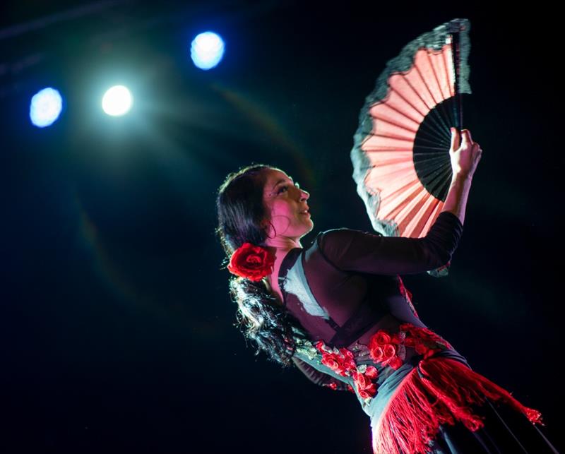 Explora el teu cos i sent el teu ritme al compàs de les palmes i la guitarra espanyola. Combinarem el flamenc amb la cultura àrab donant pas a una original fusió que et commourà. Descobreix l'art d'expressar emocions, una teràpia per a empoderar-te i sacsejar les teues penes. Adequat per a programes d'interculturalitat i igualtat i recomanable per a tots els públics.