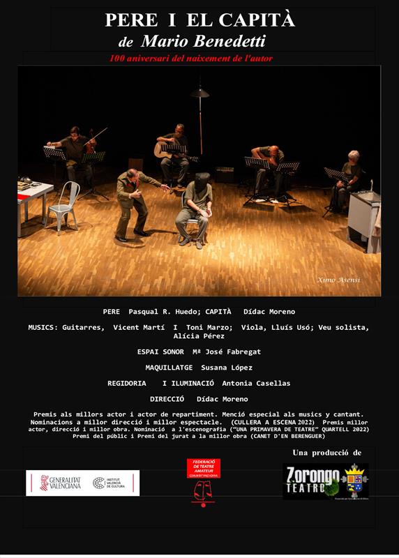 Pere y el capitán es un tenso diálogo entre víctima y verdugo que se desarrolla en una sala de interrogatorios. Pere es un hombre que usa su silencio casi como un escudo y su negativa casi como una arma, un hombre que prefiere la muerte a la traición. Un texto que invita a rechazar todo acto de totalitarismo y refuerza nuestras convicciones humanistas y democráticas.