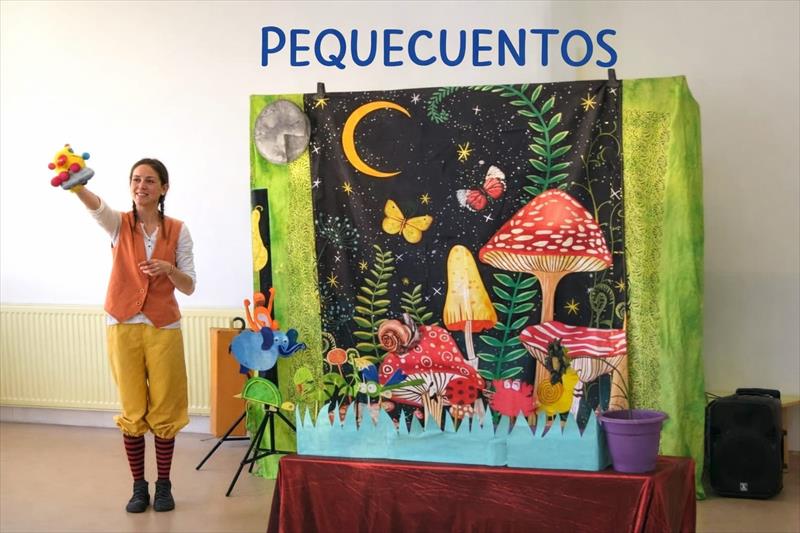 Peque Cuentos es un espectáculo de narración teatralizada con apoyo de pequeñas marionetas, creado especialmente para público infantil de 1 a 3 años (aunque disfrutable hasta los 5 años). A través de dos historias: El Caracol Pol y ¿a que sabe la Luna?, muy visuales, participativas y llenas de ternura, los niños y niñas se convierten en parte activa del relato, ayudando a los personajes a superar retos mediante el juego, la imaginación y el trabajo en equipo. El espectáculo finaliza con un momento mágico de danza colectiva rodeados de pompas de jabón, creando una experiencia sensorial.