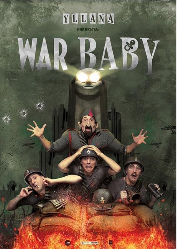 En el más puro estilo Yllana, WAR BABY nos traslada a un centro de reclutamiento militar, en el que un grupo de despistados reclutas son entrenados para una disparatada guerra que ha originado el nuevo líder del país, que resulta ser un bebé consentido y belicoso. Una ristra de personajes divertidísimos y un sin fin de situaciones disparatadas alrededor de la temática de la guerra y el poder, serán la base de esta sátira antibelicista de Yllana.